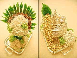 tight corners and narrow spaces shouldn't hinder your wish for a remarkable looking pelamin. fine materials coupled with the right color combination and proper pelamin design may produce a look as stunning as any pelamin assembled within a generous space. for this particular pelamin we did for our client's akad nikah, we maximized the minimal space afforded by placing the flower accents on a vertical plane without compromising on the desired impact. hydrangeas in whites and greens, fluffed and molded into square frames of varying sizes, scattered across a square panel swathed in crumpled satin created an impressive backdrop for our client's most memorable moment yet.