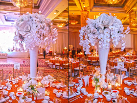 we overwhelmed the expansive spaces of the Mandarin Oriental grand ballroom with profusions of oversize floral details and candle lights for this wedding reception.